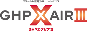 「GHP XAIR(エグゼア)」の「X」は、「究極の高効率」や「無限の可能性」を、「AIR」は「AIRconditioner=空調」と「快適な環境」・「快適な空調」を意味します。新登場の「GHP XAIRⅢ」は、「GHP XAIRⅡ」のエネルギー消費効率をさらに向上させた製品です。