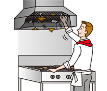 ダクト内や換気扇の油滴やホコリは、ダクト火災の原因になります。