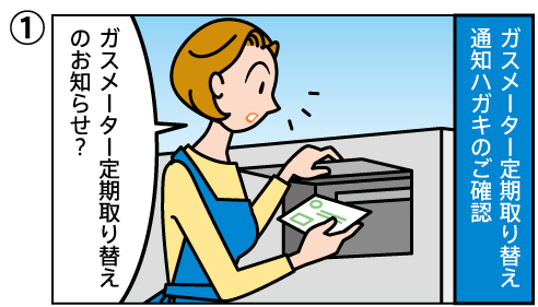 - 予定日に係員が訪問し、ガスメーターの取り替え作業を行います。作業時間は一般のご家庭で20分程度です。
