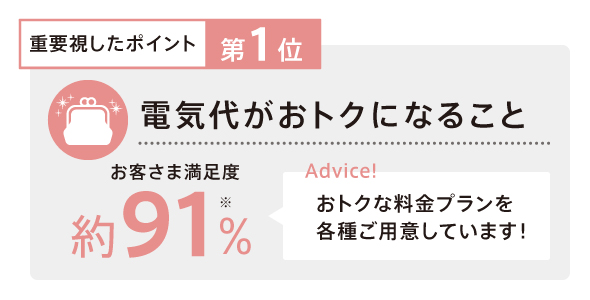 お客さまが「京葉ガスのでんき」へ切り替えの際に「重要視したポイント」と、その満足度をご紹介!