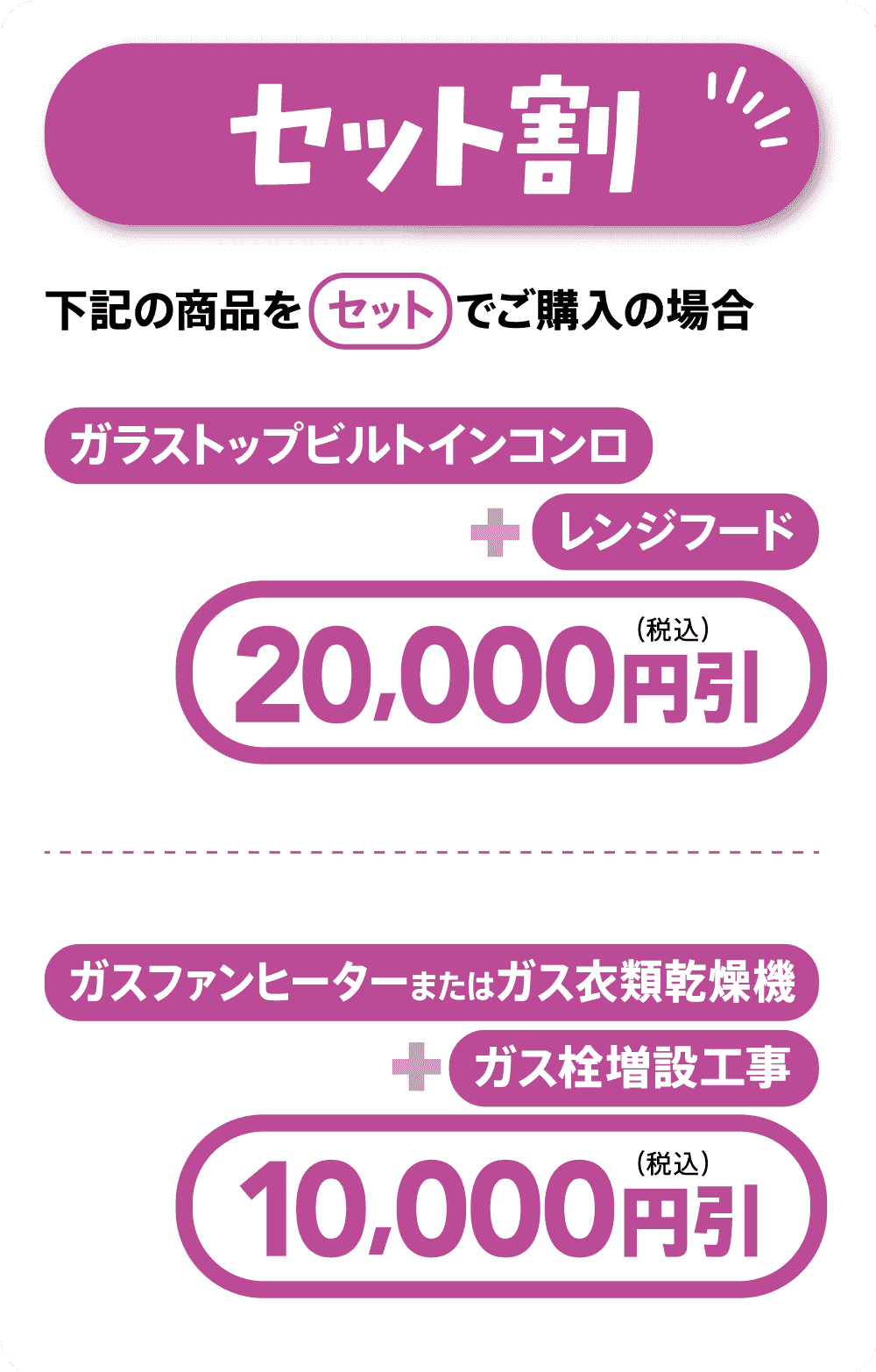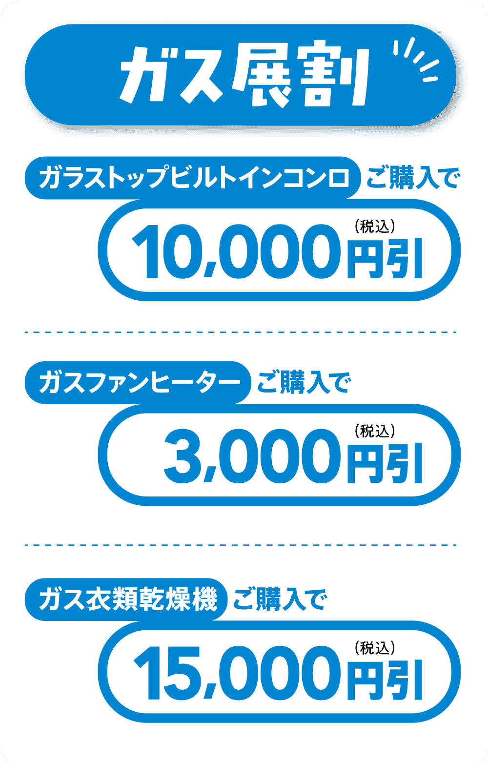各種割引の適用はガス展期間のお申し込みが条件です。